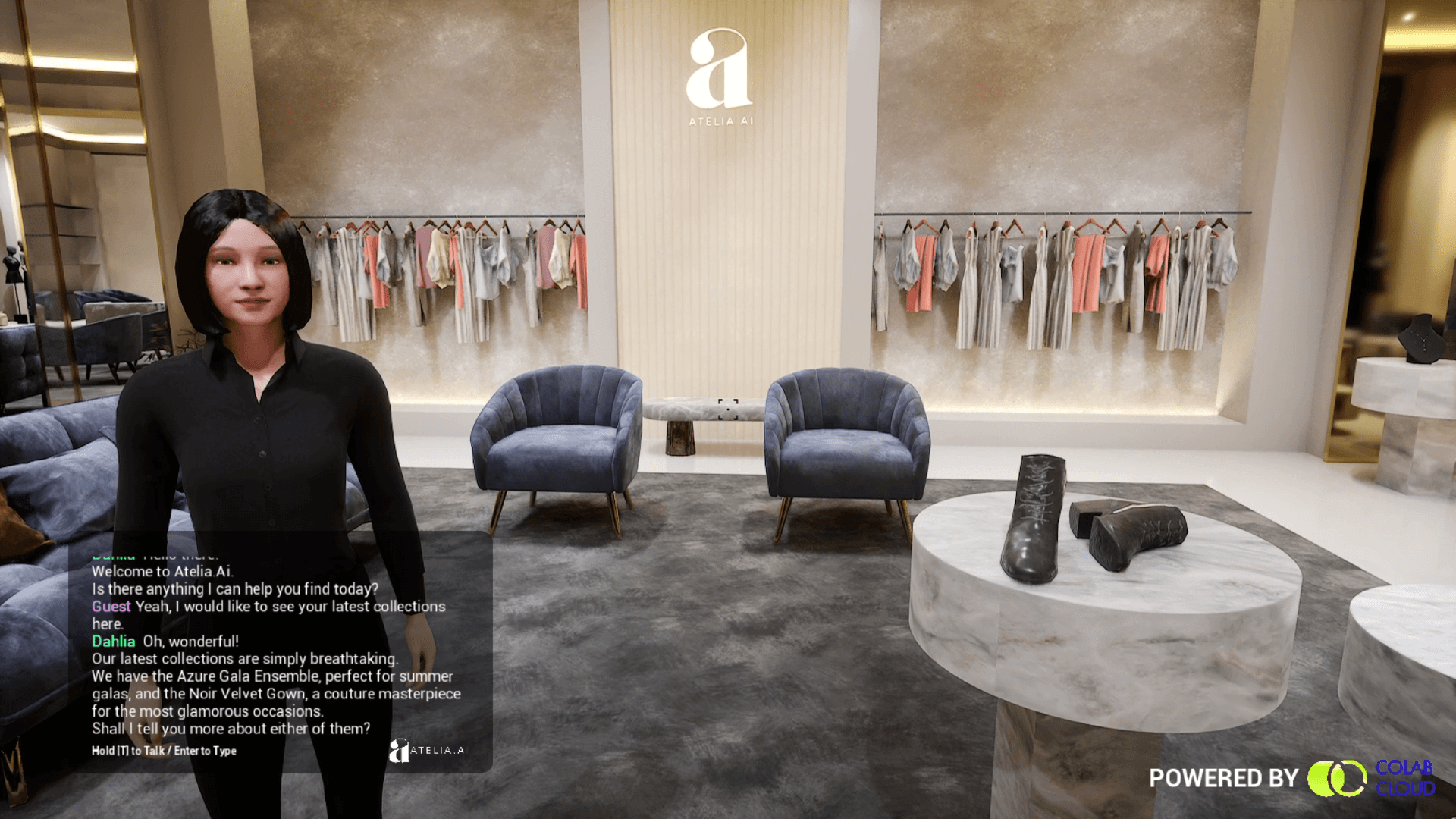 Created two luxury-looking virtual showrooms for Atelia.AI, giving clients the ability to explore fashion collections through immersive 3D environments. The interactive shopping experience allowed users to navigate the space, view garments in detail, and interact with a virtual assistant, making the online buying process engaging and closer to a real-world showroom visit.